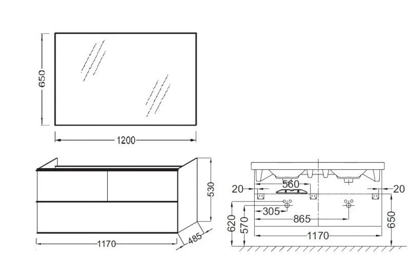 Тумба: размеры 117х48,5х53 см