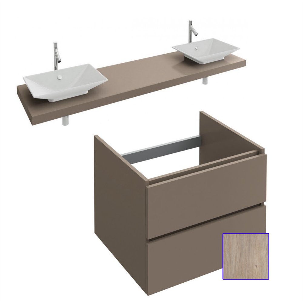 Parallel 200см, комплект мебели для ванной, со столешницей, подвесной, квебекский дуб, 2 ящика, 1 раковина, 1 полочка