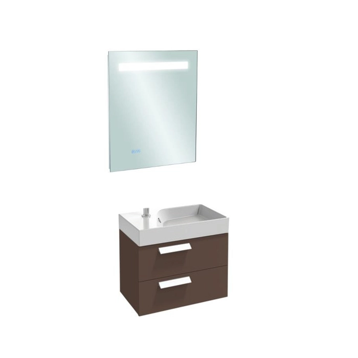 Rythmik 60см, комплект мебели для ванной, подвесной монтаж, светло-коричневый лак, подсветка зеркала, анти-пар и часы, арт. EB1158-NF+EXR112-Z-00+EB13