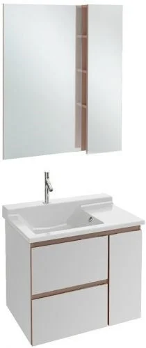 Soprano 80см, комплект мебели для ванной, подвесной, белый глянец, 2 ящика, 1 дверца, зеркало со шкафчиком Jacob Delafon, Франция