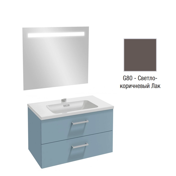 Vox 80см, комплект мебели для ванной, подвесной монтаж, светло-коричневый лак, 2 выдвижных ящика, прямоугольная ручка, с функцией анти-пар, арт. EB141
