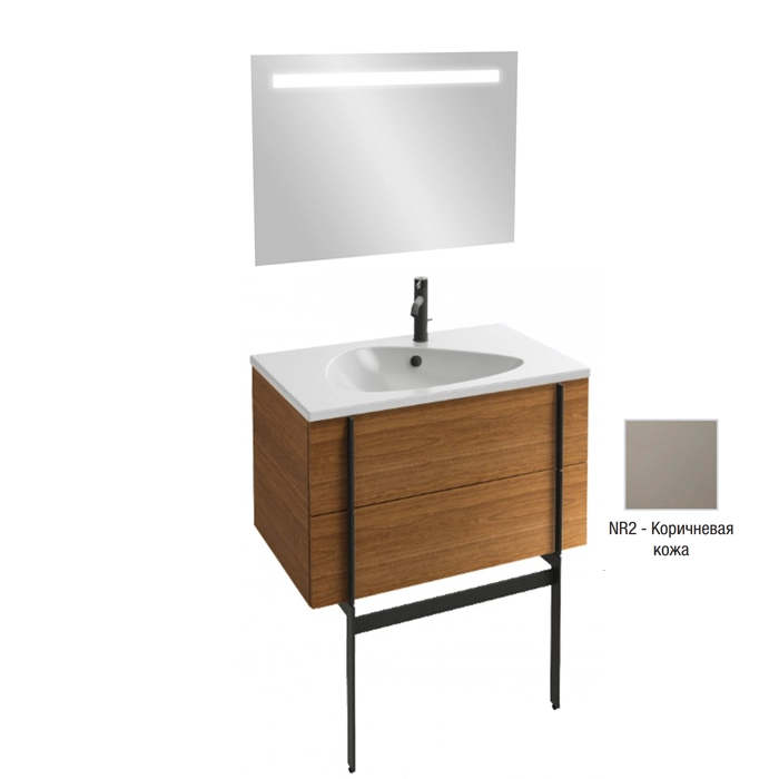 Nouvelle Vague 80х50,8х45,2см, комплект мебели для ванной, подвесная тумба, коричневая кожа., арт. EB1413-NF+EB3030-NR2+EXAR112-Z-00, Jacob Delafon