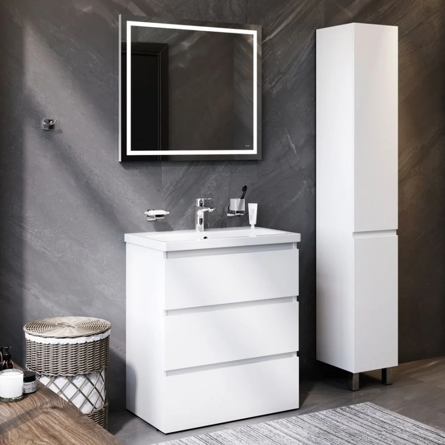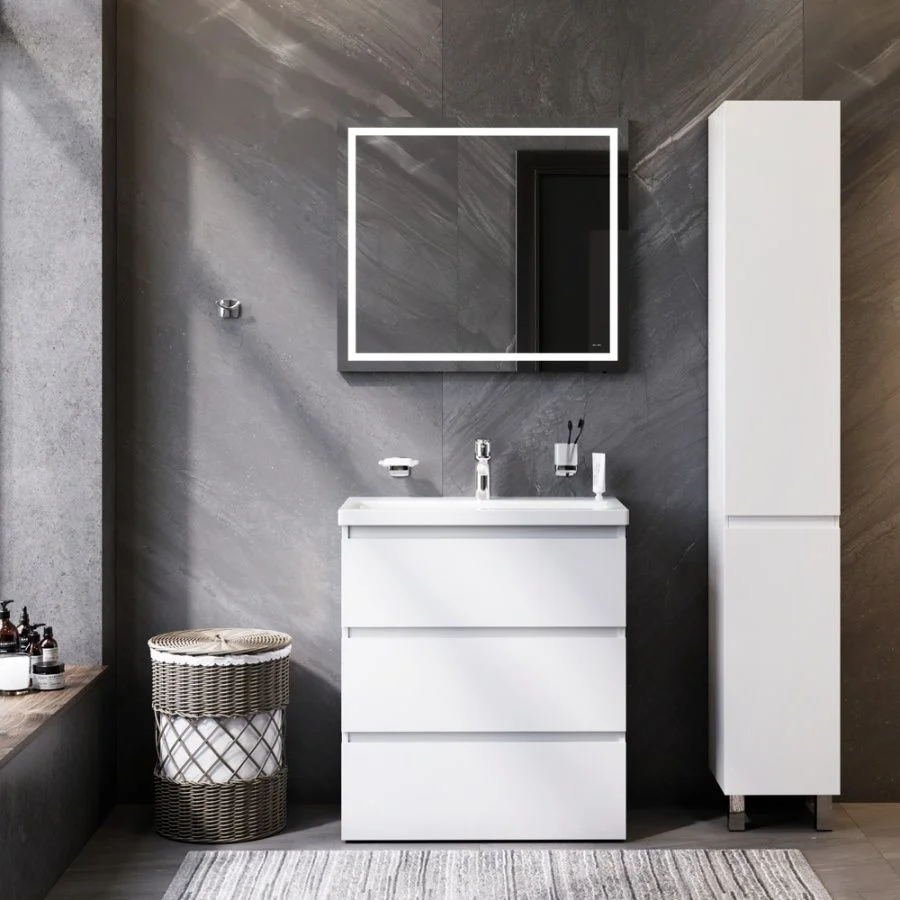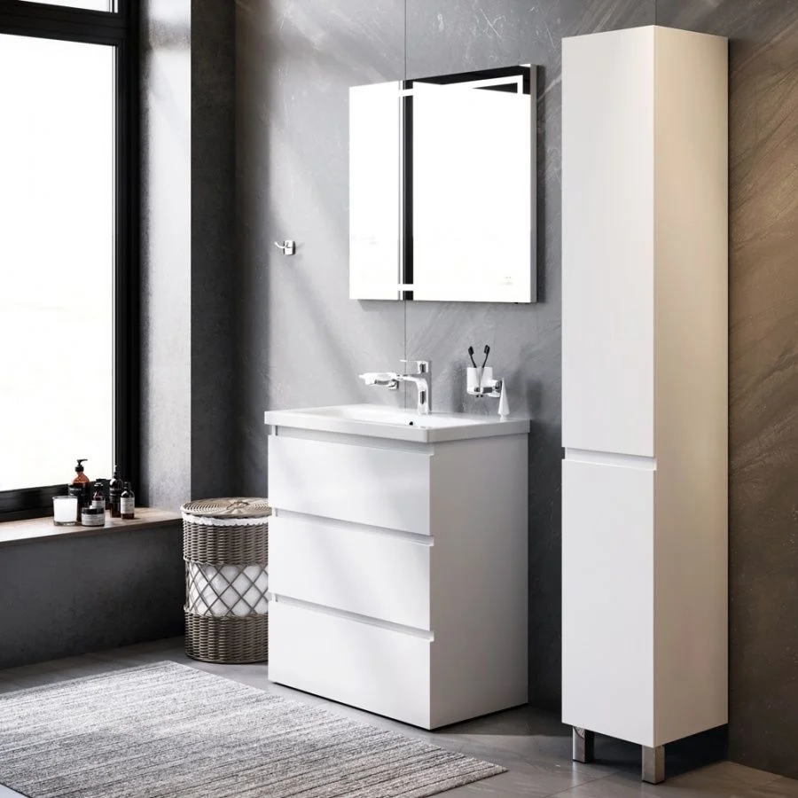 Современный европейский дизайн этого комплекта разработан престижным агентством DanelonMeroni (Великобритания/Италия). Уникальный нижний ящик мебельной тумбы может быть использован как: выдвижная подставка для детей для удобного мытья рук дополнительная ниша для хранения.