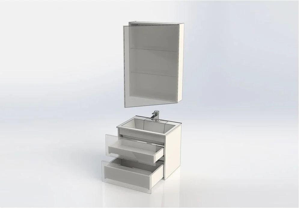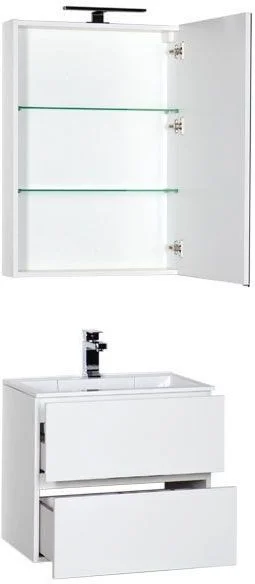 Мебельный гарнитур Акванет Алвита придаст интерьеру ванной комнаты нотку особого очарования и уникальности, благодаря своей нестандартной красивой отделке. Покрытие имеет высокие эксплуатационные характеристики, в частности влагонепроницаемость, прочность и простоту в уходе. Современный дизайн демонстрирует аккуратный минимализм геометрически четких форм, где основная идея подчинена максимальной функциональности. Вместительная тумба с верхним и нижним выдвижными ящиками и зеркало-шкафчик с полками за распашной дверцей создают дополнительное пространство, где будут надежно скрыты от влаги банные принадлежности, а все необходимое при умывании и принятии ванны теперь будет у вас под рукой. Ящики тумбы закрываются легко и бесшумно, благодаря механизму доводчика. Раковина «Фортуна» имеет уникальную конструкцию слива: вместо привычного расположения по центру, он находится в скрытом отсеке под съемной крышкой. Смещение слива и сифона к стене, в сторону канализационного отвода, избавляет от необходимости менять устро