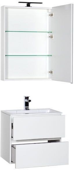 Мебельный гарнитур Акванет Алвита придаст интерьеру ванной комнаты нотку особого очарования и уникальности, благодаря своей нестандартной красивой отделке. Покрытие имеет высокие эксплуатационные характеристики, в частности влагонепроницаемость, прочность и простоту в уходе. Современный дизайн демонстрирует аккуратный минимализм геометрически четких форм, где основная идея подчинена максимальной функциональности. Вместительная тумба с верхним и нижним выдвижными ящиками и зеркало-шкафчик с полками за распашной дверцей создают дополнительное пространство, где будут надежно скрыты от влаги банные принадлежности, а все необходимое при умывании и принятии ванны теперь будет у вас под рукой. Ящики тумбы закрываются легко и бесшумно, благодаря механизму доводчика. Раковина «Фортуна» имеет уникальную конструкцию слива: вместо привычного расположения по центру, он находится в скрытом отсеке под съемной крышкой. Смещение слива и сифона к стене, в сторону канализационного отвода, избавляет от необходимости менять устро