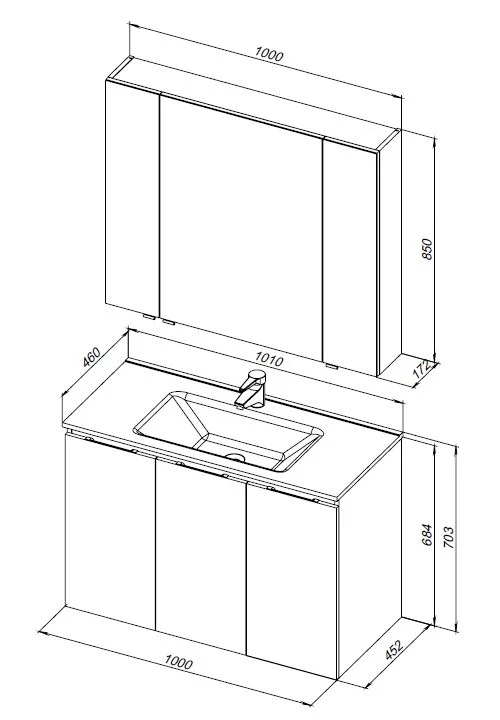 Комплект мебели Aquanet Алвита New 100 3 дверцы, дуб веллингтон белый 00274533