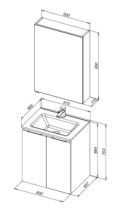 Комплект мебели Aquanet Алвита New 60 2 дверцы, антрацит 00274223