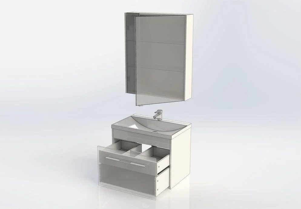Комплект мебели для ванной Aquanet Августа 75 белого цвета отличает простота дизайна вкупе с функциональностью элементов. Корпуса как для тумбы, так и для зеркального шкафа выполнены из ламинированного влагостойкого ДСП, а фасады - из МДФ, покрытого белой краской в несколько слоев. У тумбы один ящик, но он с секретом. Внутри скрыт еще один, неглубокий, но очень удобный, разделенный на несколько отделений, где удобно хранить разнообразную мелочевку. Механизм открывания снабжен доводчиками, ручки турецкой фирмы Systems. Тумба комплектуется раковиной из литьевого мрамора Нота new производства партнеров Aquanet компании «Цвет и стиль». Удобная зона хранения скрыта за зеркальной дверцей подвесного шкафчика высотой 90 см и шириной 75 см, которая грамотно организована благодаря двум стеклянным полочкам в каждом отделении. Шкафчик имеет один зеркальный фасад и, соответственно, одно отделение для хранения. Для подвешивания изделий предусмотрена надежная фурнитура немецкой компании Hafele.