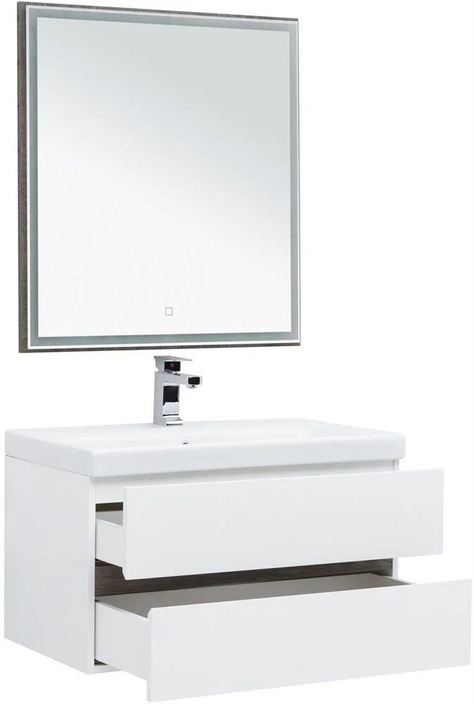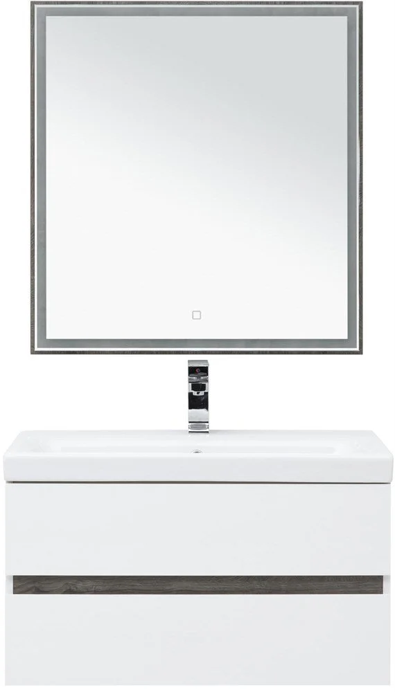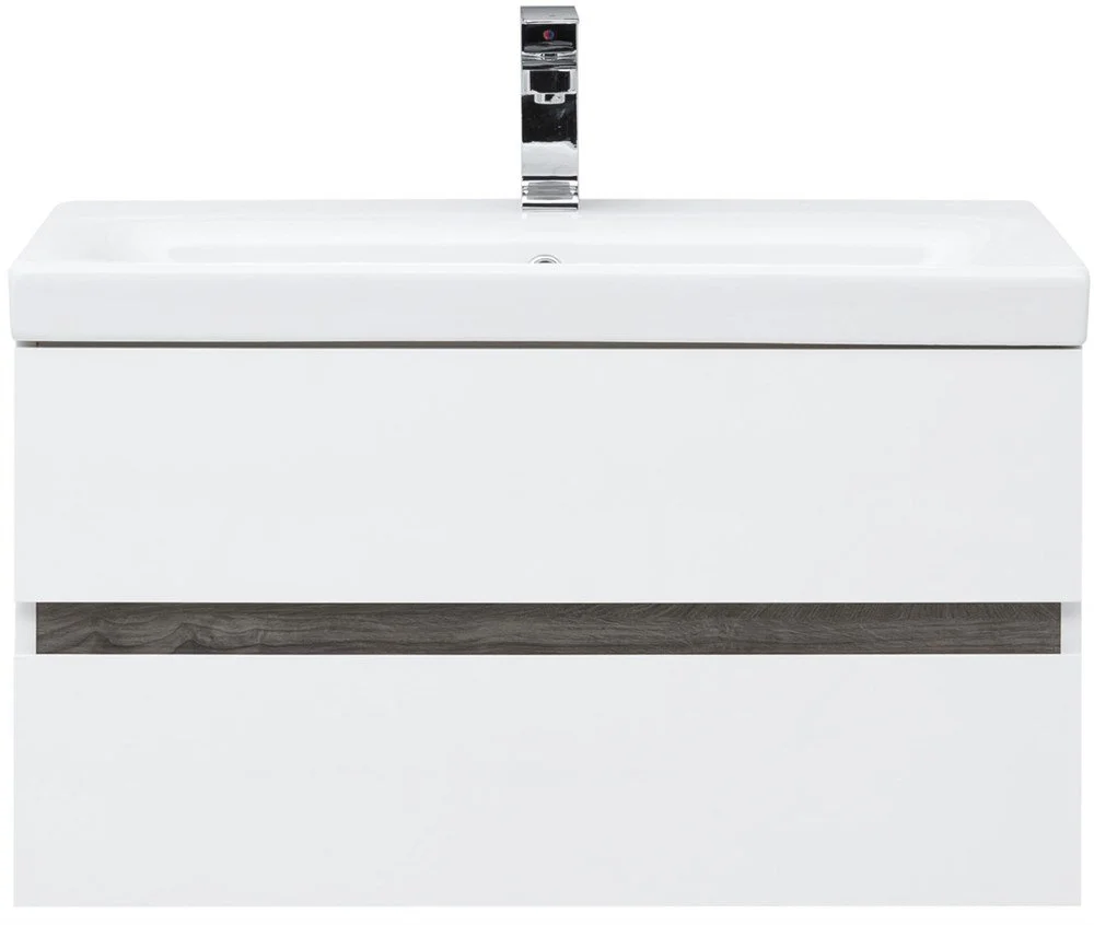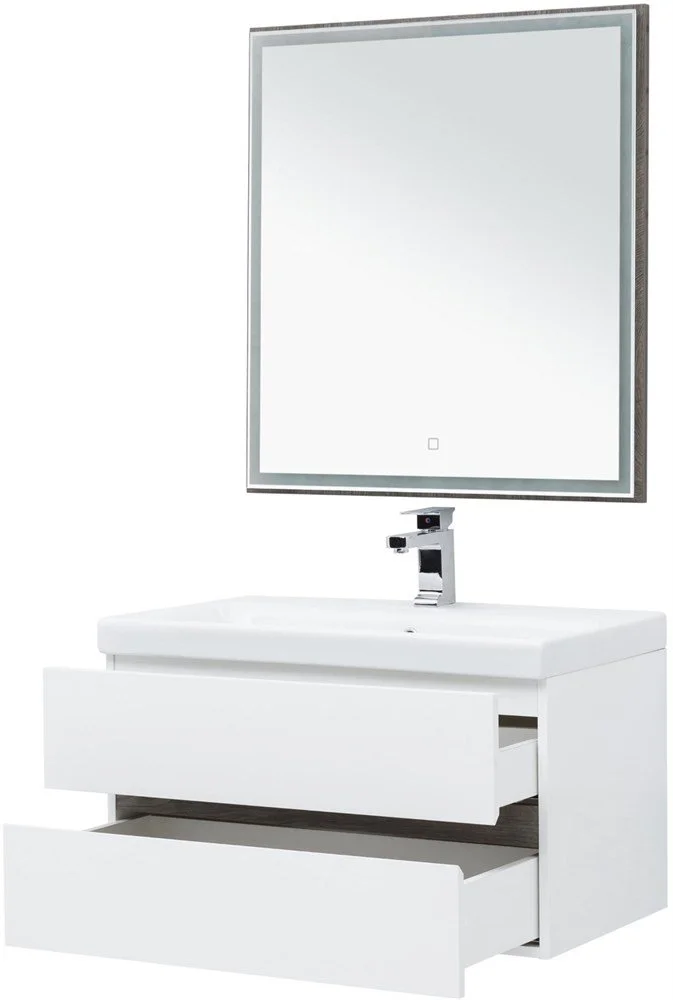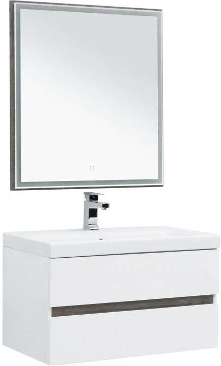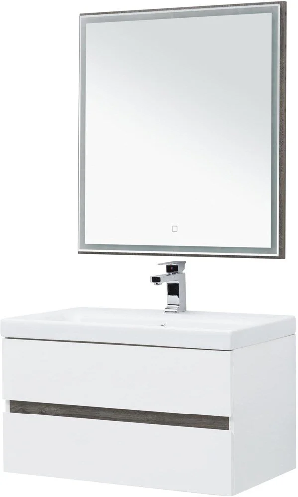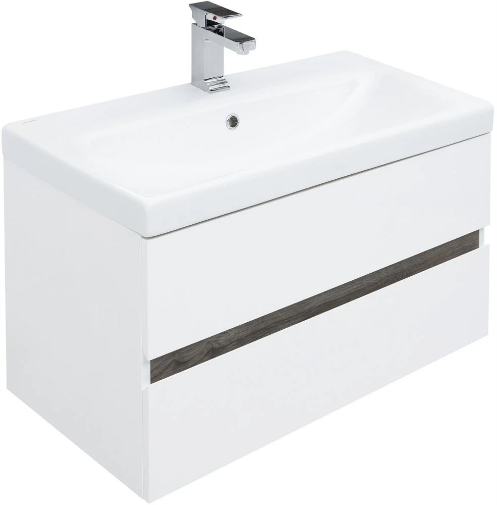 Мебель для ванной Aquanet Беркли 80 белый/дуб рошелье (зеркало дуб рошелье) имеет изюминку - контрастную декоративную полосу между ящиками в цвете «дуб рошелье». Корпус и фасады тумбы выполнены из влагостойкого ЛДСП и покрыты глянцевой белой эмалью. В конструкции тумбы использованы интегрированные ручки без острых краев и внутренних углов.