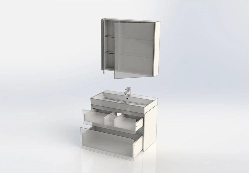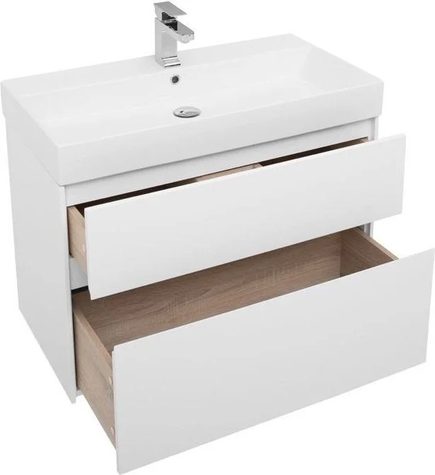 Комплект мебели для ванной Aquanet Бруклин 85 состоит из подвесной тумбы с раковиной и зеркального шкафа - все белого цвета В комплекте соединились модели из разных коллекций: тумба "Бруклин" шириной 85 см и зеркальный шкаф "Латина" шириной 85 см Корпус изделия выполнен из выкрашенного белой краской влагостойкого ЛДСП, фасады – из МДФ В тумбе интегрированные ручки, когда открывание происходит за счет выступающей детали верхней или нижней части фасада, которая срезана под углом, в результате чего образуется выемка, служащая ручкой Раковина из керамики с тонкими изящными бортиками идет размер в размер с тумбой, в результате чего все изделие выглядит как единое целое На контрасте с белизной внешних деталей стильно смотрится корпус выдвижных ящиков, выполненный в цвете «дуб сонома» Нижний ящик тумбы имеет большую зону хранения, верхний разделен на несколько отделений, которые помогут грамотно разложить все необходимое по своим местам