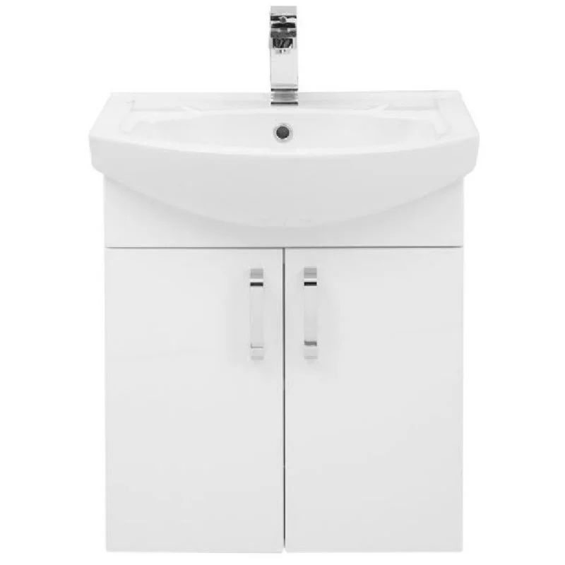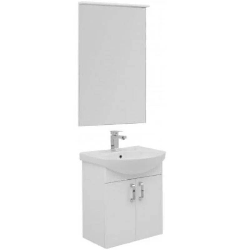 Комплект мебели Aquanet Ирис 60, цвет - белый, (2 дверцы) отвечает всем основным покупательским предпочтениям. Во-первых, выполнен он в белом цвете – самом востребованном для обустройства санитарно-бытовых помещений. Во-вторых, радует экономных покупателей очень привлекательной ценой. В-третьих, изготовлен из влагостойких материалов: корпус тумбы – из ЛДСП, а фасады – из МДФ. Тумба шириной 60 см имеет универсальный тип установки. Ее можно подвесить или установить на ножки – оба варианта предусмотрены. Внутреннее устройство тумбы стандартно: две распашные дверцы, где все необходимое можно разложить по двум полочкам. В комплекте предусмотрена керамическая раковина «Элеганс» с обрамлением. Простое на первый взгляд зеркало имеет элегантный козырек из МДФ, куда встроен LED-светильник. <