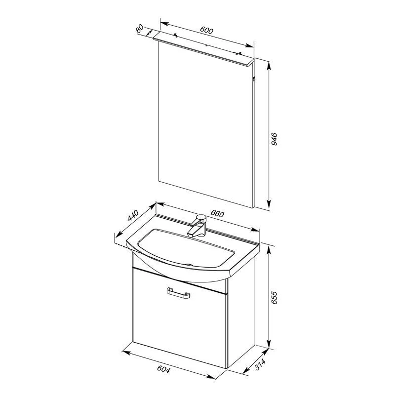 Комплект мебели Aquanet Ирис 65, цвет - белый, (1 ящик) отвечает всем основным покупательским предпочтениям. Во-первых, выполнен он в белом цвете – самом востребованном для обустройства санитарно-бытовых помещений. Во-вторых, радует экономных покупателей очень привлекательной ценой. В-третьих, изготовлен из влагостойких материалов: корпус тумбы – из ЛДСП, а фасады – из МДФ. Тумба шириной 65 см имеет универсальный тип установки. Ее можно подвесить или установить на ножки – оба варианта предусмотрены. Тумба комплектуется глубоким выдвижным ящиком, оснащенным доводчиками, куда поместятся и небольшие предметы, и высокие тюбики, флаконы, дозаторы. В тумбе нижний выдвижной ящик изготавливается без выреза под сифон. В комплекте предусмотрена керамическая раковина «Элеганс» с обрамлением. Простое на первый взгляд зеркало имеет элегантный козырек из МДФ, куда встроен LED-светильник. <
