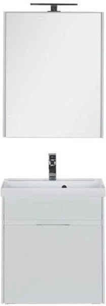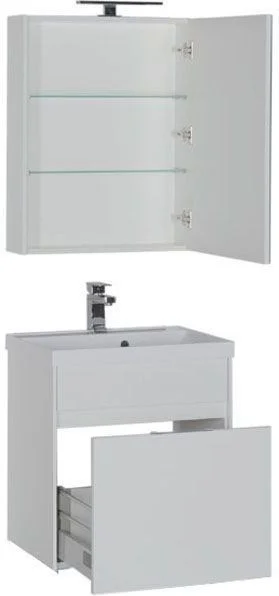 Мебельный комплект Акванет Латина — новое предложение для тех, кто решил создать ванную комнату в стиле «модерн». Комплект сравнительно компактен, в то же время вместительное отделение тумбы сокроет в себе белье и полотенца, а зеркало-шкаф позволит хранить необходимые для ежедневной гигиены принадлежности непосредственно «под рукой». Мягкое, в то же время достаточное по силе освещение создают экономичные внешние светильники. Среди достоинств комплекта также хромированная ручка выдвижного ящика с доводчиками плавного закрывания и глубокая прямоугольная раковина из литьевого мрамора, что очень актуально для современных интерьеров. Белое глянцевое покрытие «Латины» соответствует представлениям о чистоте и здоровье и гармонирует с белизной ванны, кабины или душевого уголка в ванной комнате.