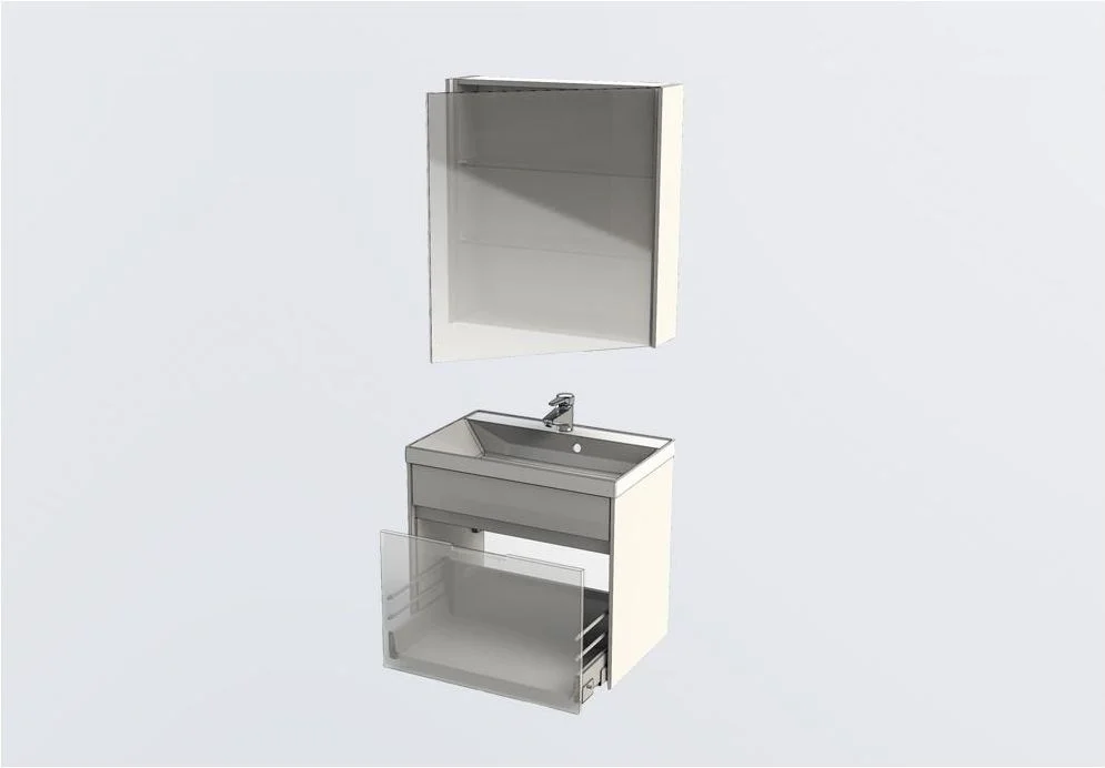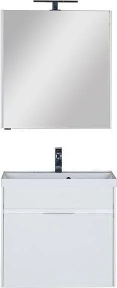 Мебельный комплект Акванет Латина — новое предложение для тех, кто решил создать ванную комнату в стиле «модерн». Комплект сравнительно компактен, в то же время вместительное отделение тумбы сокроет в себе белье и полотенца, а зеркало-шкаф позволит хранить необходимые для ежедневной гигиены принадлежности непосредственно «под рукой». Мягкое, в то же время достаточное по силе освещение создают экономичные внешние светильники. Среди достоинств комплекта также хромированная ручка выдвижного ящика с доводчиками плавного закрывания и глубокая прямоугольная раковина из литьевого мрамора, что очень актуально для современных интерьеров. Белое глянцевое покрытие «Латины» соответствует представлениям о чистоте и здоровье и гармонирует с белизной ванны, кабины или душевого уголка в ванной комнате.