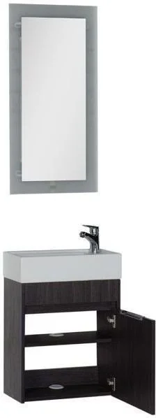 Мебельный комплект Акванет Лидс — предложение для тех, кто желает установить в свою ванную комнату компактный, но весьма вместительный гарнитур, его полки станут просторной территорией для белья и полотенец. Своеобразием новой мебели стал ее цвет отделки — «эвкалипт мистери», это первое предложение от Aquanet в данном цвете. Рисунок текстуры натурального дерева всегда приятен взору, как и всё, демонстрирующее созданное живой природой. Такая поверхность успокаивает и настраивает на позитив, а это как раз то, что нужно в ванной комнате. Ламинированное покрытие «Лидса» соответствует представлениям о чистоте и здоровье и эффектно контрастирует с белизной ванны, кабины или душевого уголка в ванной комнате. В качестве столешницы тумба комплектуется глубокой прямоугольной керамической раковиной с боковым расположением отверстия под смеситель, по правую руку. Таким образом, ее можно установить в углу ванной комнаты. Мягкое и достаточное по силе освещение излучает встроенный в зеркало LED-светильник, экономично расход
