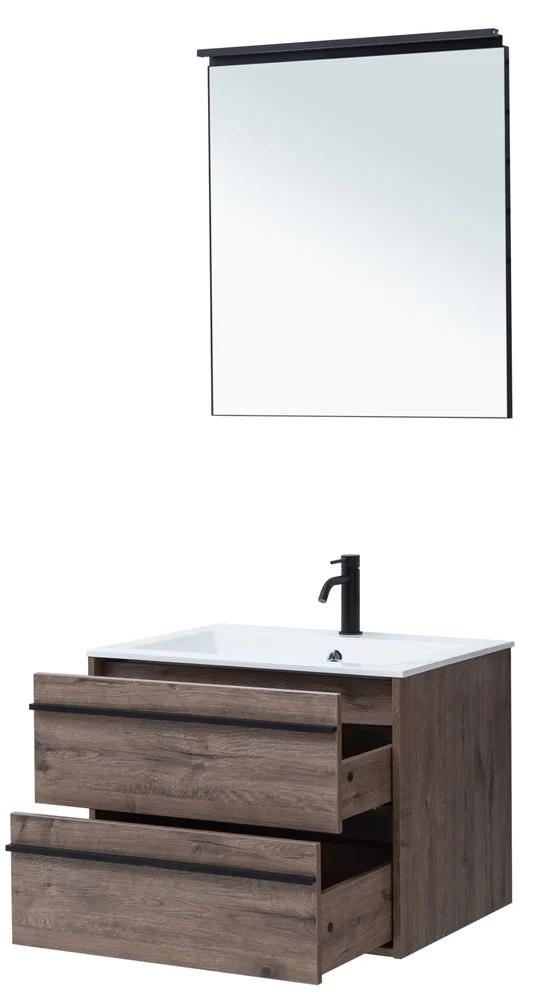 Мебель для ванной Aquanet Lino 70 в цвете "дуб веллингтон" - яркий пример мебели в эко-стиле. Яркая, приятная глазу цветовая гамма плюс текстурная поверхность, максимально приближенная по тактильным ощущениям к натуральной древесной поверхности, является визитной карточкой коллекции. В комплекте тумба с очень удобной зоной хранения: два выдвижных ящика, оборудованных доводчиками, словно утоплены внутрь корпуса. Тонкие изящные ручки во всю ширину ящиков. Именно они находятся в одной плоскости с боковыми стенками. Выглядит стильно. К тому же, безопасно, так как нет выступающих деталей. Кстати, ручки отечественного производства. Сделаны из алюминия, чтобы исключить возможность коррозии, по заказу Aquanet специально для этой коллекции. Сверху на них нанесено эмалевое покрытие. Корпус и фасады тумбы шириной 60 см – из влагостойкого ЛДСП. Сверху установлена раковина «Электра» из литьевого мрамора. У нее максимально глубокая и объемная чаша, но все внутренние детали скруглены. В комплекте зеркало, выполненное в совр