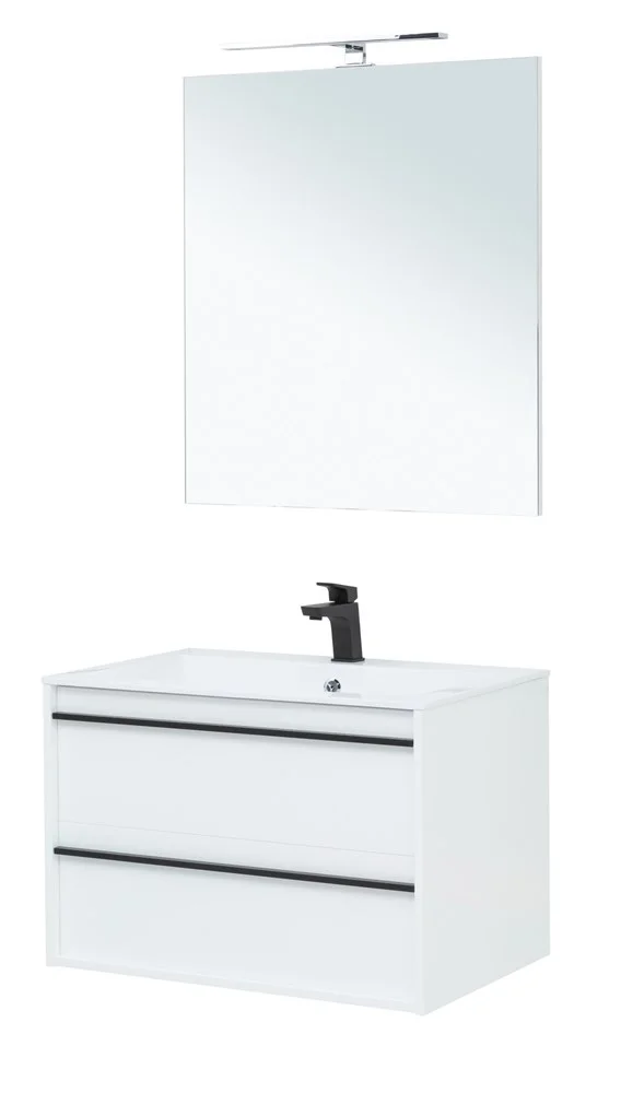 Мебель для ванной Aquanet Lino 80 белый матовый - яркий пример мебели в эко-стиле. В комплекте тумба с очень удобной зоной хранения: два выдвижных ящика, оборудованных доводчиками, словно утоплены внутрь корпуса. Тонкие изящные ручки во всю ширину ящиков. Именно они находятся в одной плоскости с боковыми стенками. Выглядит стильно. К тому же, безопасно, так как нет выступающих деталей. Кстати, ручки отечественного производства. Сделаны из алюминия, чтобы исключить возможность коррозии, по заказу Aquanet специально для этой коллекции. Сверху на них нанесено эмалевое покрытие. Сверху – раковина «Электра» из литьевого мрамора. У нее максимально глубокая и объемная чаша, но все внутренние детали скруглены. Корпус и фасады тумбы шириной 80 см – из влагостойкого ЛДСП, внутренняя часть ящиков выполнена в цвете «дуб кантри», что создает легкий контраст белоснежным деталям корпуса и фасада. В комплекте зеркало, выполненное в современном дизайне, простое по форме и качественное по исполнению. ВНИМАНИЕ! Светильник в ком