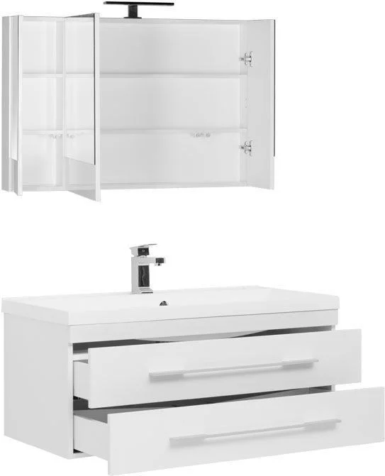 Комплект мебели в ванную Акванет Нота 100 – практичный выбор для современной просторной ванной комнаты. Набор мебели украсит интерьер и добавит удобств при посещении ванной. В основном наборе широкая раковина-столешница, тумба с выдвижными ящиками и зеркало-шкаф со светодиодной подсветкой. Три отделения зеркального шкафа обеспечивают легкий доступ к внутренним полкам, где можно хранить лекарственные и косметические средства. Навесной пенал коллекции Нота с множеством полок за распашной дверцей и большим выдвижным ящиком для полотенец и бытовых средств станет хорошим дополнением к комплекту. К навесной тумбе можно добавить небольшую подкатную тумбу с двумя отделениями, которая может служить не только дополнительным местом хранения, но и удобной подставкой или даже сиденьем, сделав комплект Нота цельным и практичным.