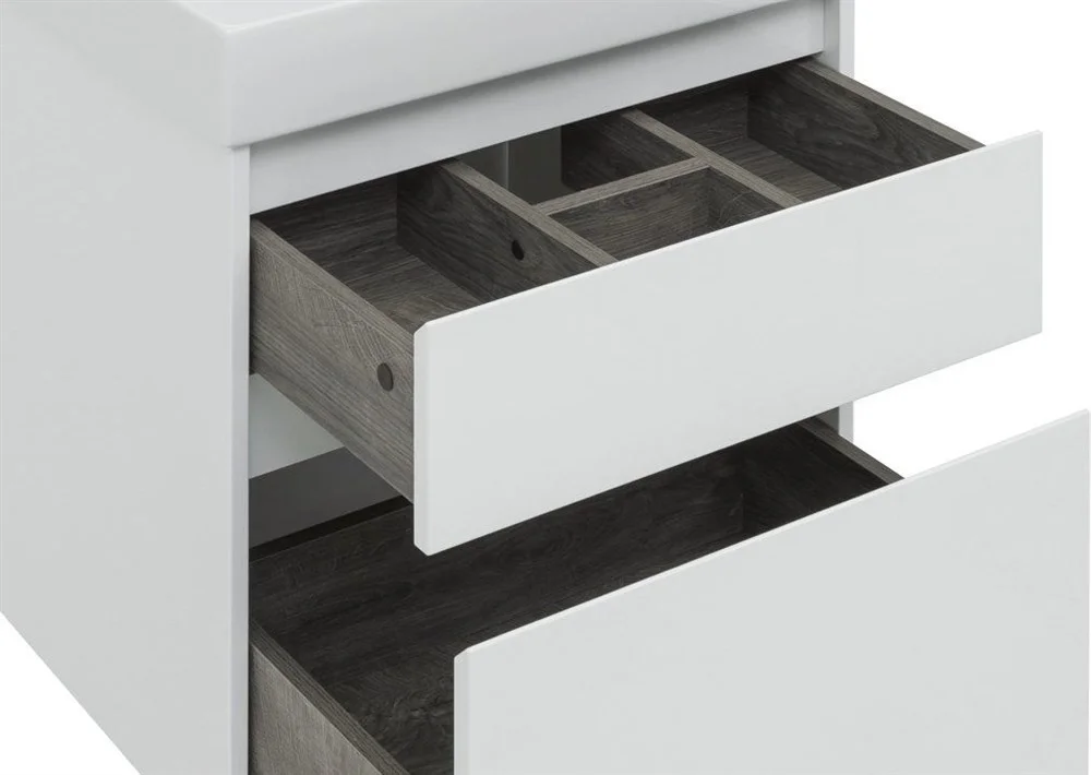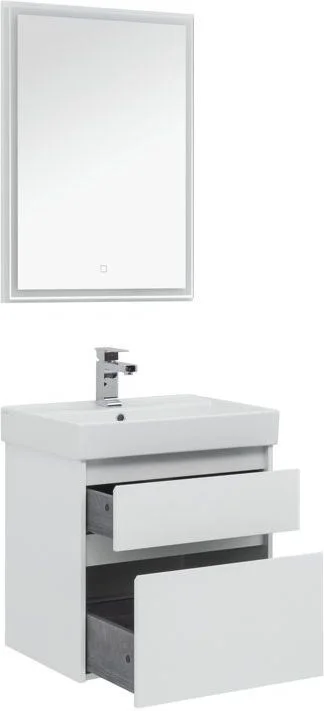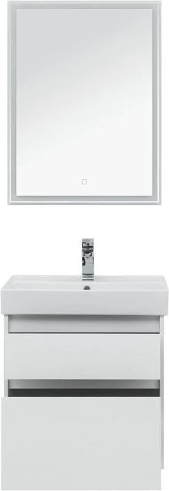Мебель для ванной Aquanet Nova Lite 60 белоснежного цвета из влагостойкой ламинированной древесно-стружечной плиты выглядит нарядно. Подвесной монтаж придает визуальную легкость тумбе шириной 60 см. Она оборудована двумя выдвижными ящиками. Ящики довольно вместительные и позволяют разместить все необходимое. Комплектуются направляющими немецкого производства Hettich Quadro, оснащенными доводчиками. Фасады выполнены с декоративной интегрированной ручкой, не имеющей острых краев и внутренних углов, что обеспечивает удобство эксплуатации и легкий уход за мебелью. Неглубокая и стильная керамическая раковина «Латина» идеально подходит к тумбе. Комплект дополняет зеркало с LED-подсветкой по периметру.