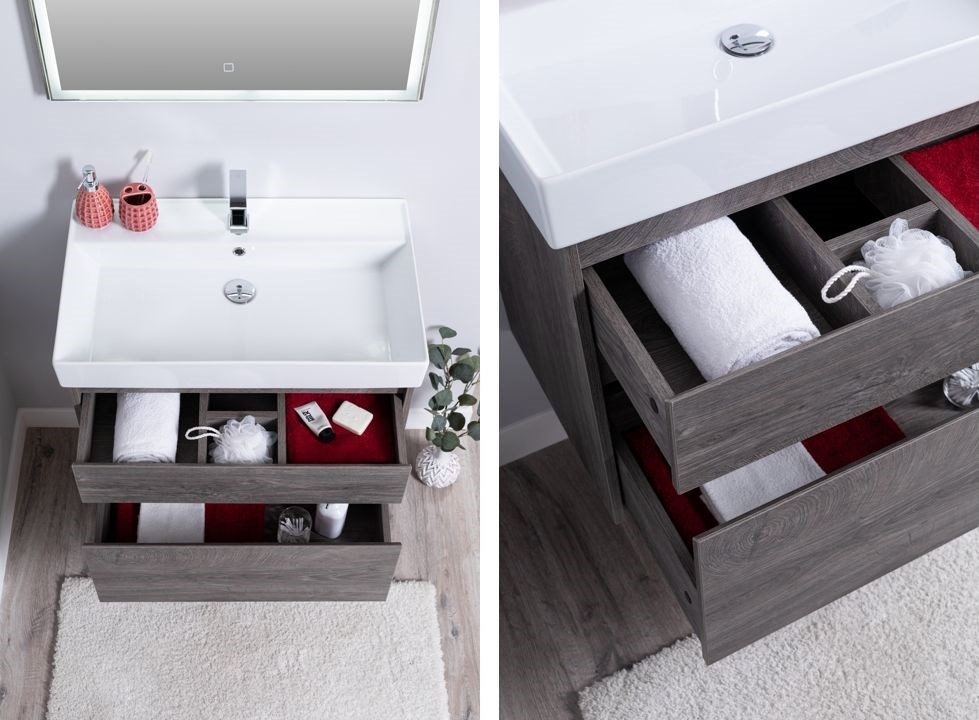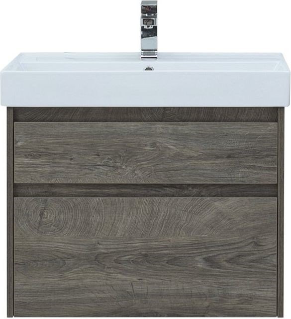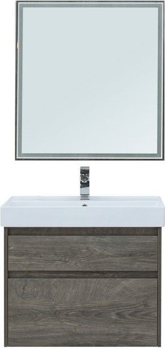 Мебель для ванной Aquanet Nova Lite 75 из влагостойкой ламинированной древесно-стружечной плиты в благородном цвете «дуб рошелье» имеет достойный вид. Фактура натурального дерева выглядит изысканно, а подвесной монтаж придает визуальную легкость тумбе шириной 75 см. Она оборудована двумя выдвижными ящиками. Ящики довольно вместительные и позволяют разместить все необходимое. Фасады выполнены с декоративной интегрированной ручкой, не имеющей острых краев и внутренних углов, что обеспечивает удобство в эксплуатации и легкий уход за мебелью. Ящики комплектуются направляющими немецкого производства Hettich Quadro, оснащенными доводчиками. Неглубокая и стильная керамическая раковина «Латина» идеально подходит к тумбе. Комплект дополняет зеркало с LED-подсветкой по периметру.