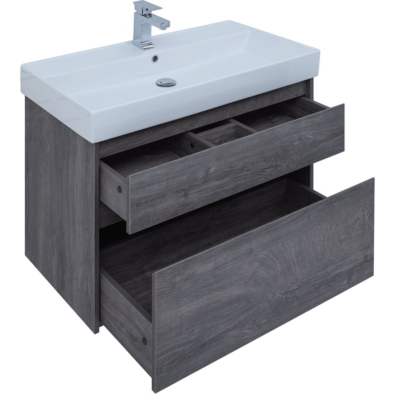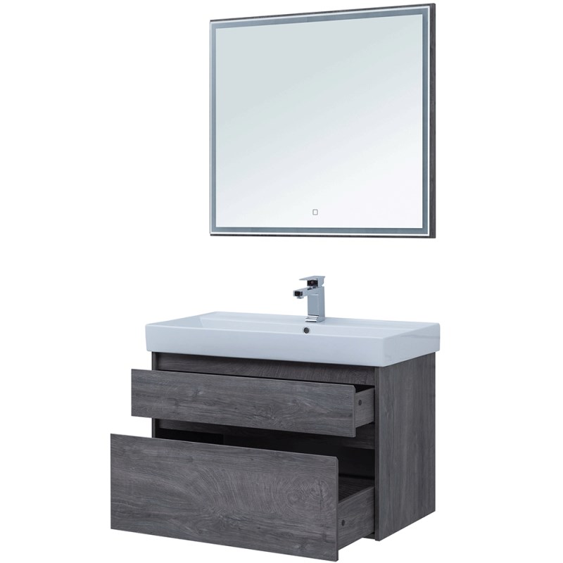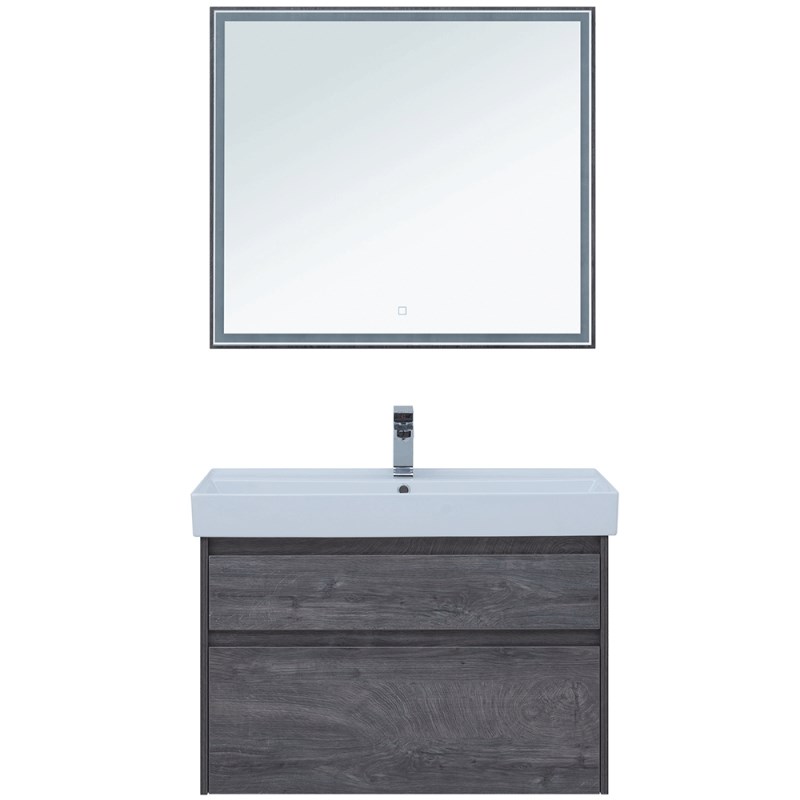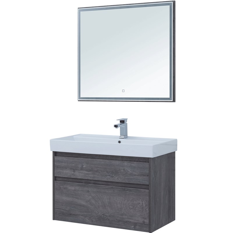 Мебель для ванной Aquanet Nova Lite 90 из влагостойкой ламинированной древесно-стружечной плиты в благородном цвете «дуб рошелье» имеет достойный вид. Фактура натурального дерева выглядит изысканно, а подвесной монтаж придает визуальную легкость тумбе шириной 90 см. Она оборудована двумя выдвижными ящиками. Ящики довольно вместительные и позволяют разместить все необходимое. Фасады выполнены с декоративной интегрированной ручкой, не имеющей острых краев и внутренних углов, что обеспечивает удобство в эксплуатации и легкий уход за мебелью. Ящики комплектуются направляющими немецкого производства Hettich Quadro, оснащенными доводчиками. Неглубокая и стильная керамическая раковина «Латина» идеально подходит к тумбе. Комплект дополняет зеркало с LED-подсветкой по периметру.
