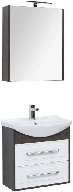 Комплект мебели для ванной Aquanet Остин 65 в цвете "дуб кантербери/белый" чрезвычайно эффектно смотрится благодаря яркому контрасту шоколадных деревянных деталей корпуса в цвете «дуб кантербери» с белыми глянцевыми фасадами выдвижных ящиков со строгой фрезеровкой. Лаконичные хромированные ручки подчеркивают элегантность узора на фасаде. Особенно хороша на этом фоне белоснежная керамическая раковина чешского бренда Dreja, которая в этом комплекте является не только функциональной деталью, неотъемлемой частью тумбы, но и декоративным элементом. Зона хранения внутри зеркального шкафа поделена на три полочки, две из которых стеклянные, что придает легкость. Комплект станет настоящим украшением интерьера, выполненного в любом стиле.