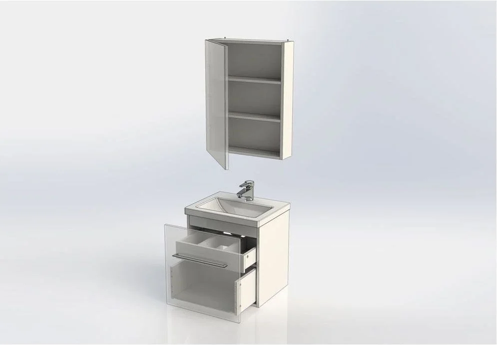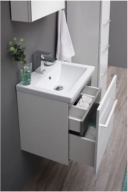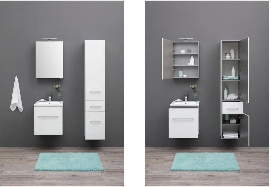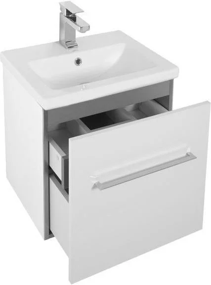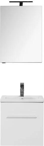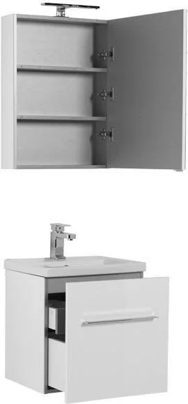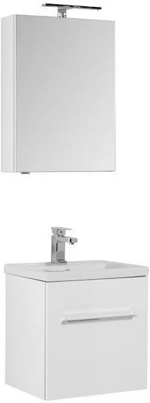 Комплект мебели Aquanet Порто 50 белого цвета включает в себя стильные и функциональные предметы. Внешний лаконизм подвесной тумбы шириной 50 см скрывает в себе очень продуманный конструктивизм внутреннего устройства, где невысокий ящик с тремя отделениями скрывается за фасадом основного места хранения, поэтому разместить в небольшой с виду модели можно много полезных в ванной комнате мелочей, а также найти место для высоких емкостей. Тумба оборудована керамической раковиной с узкими элегантными бортиками и живописной формой чаши, соединяющей в себе покатые поверхности и четкие рельефные линии. Зеркало по сути своей является фасадной частью вместительного навесного шкафчика, куда можно спрятать от посторонних взглядов все предметы ежедневной гигиены. Для удобства использования такого зеркала в верхней его части можно установить LED-светильник, который заказывается дополнительно и представлен в широком ассортименте на выбор. Для оборудования тумбы и зеркала использованы петли и доводчики немецкой фирмы Hettich