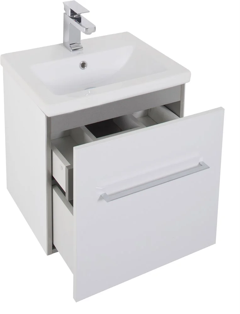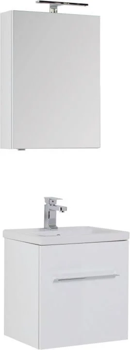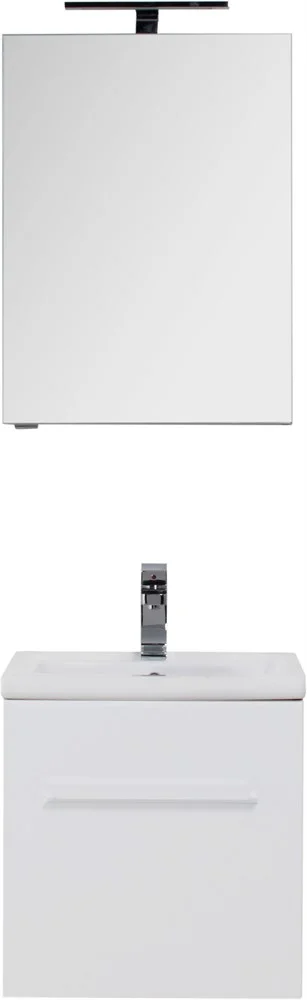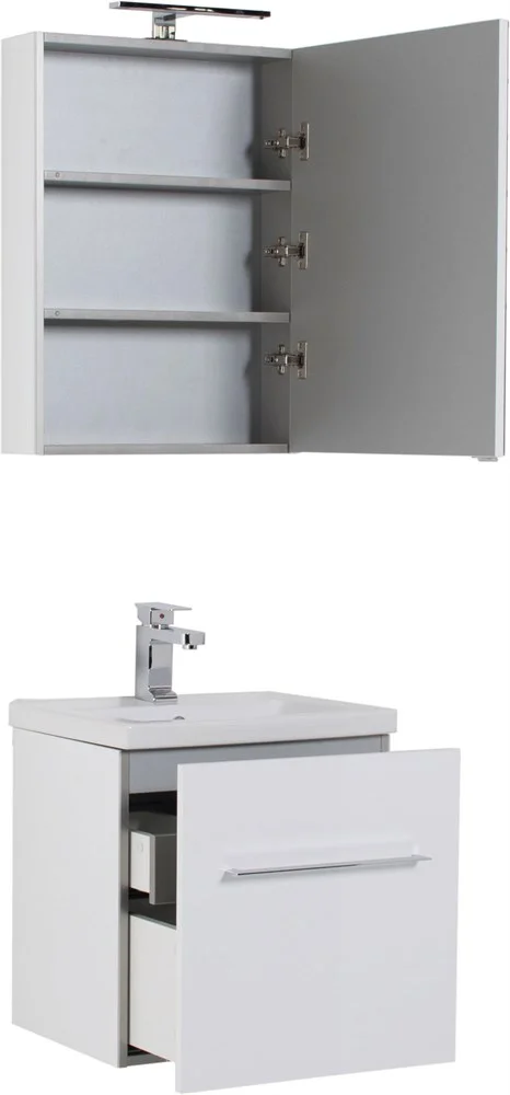 Комплект мебели Aquanet Порто 60 белого цвета включает в себя стильные и функциональные предметы. Внешний лаконизм подвесной тумбы шириной 60 см скрывает в себе очень продуманный конструктивизм внутреннего устройства, где невысокий ящик с тремя отделениями скрывается за фасадом основного места хранения, поэтому разместить в небольшой с виду модели можно много полезных в ванной комнате мелочей, а также найти место для высоких емкостей. Тумба оборудована керамической раковиной с узкими элегантными бортиками и живописной формой чаши, соединяющей в себе покатые поверхности и четкие рельефные линии. Зеркало по сути своей является фасадной частью вместительного навесного шкафчика, куда можно спрятать от посторонних взглядов все предметы ежедневной гигиены. Для удобства использования такого зеркала в верхней его части можно установить LED-светильник, который заказывается дополнительно и представлен в широком ассортименте на выбор. Для оборудования тумбы и зеркала использованы петли и доводчики немецкой фирмы Hettich