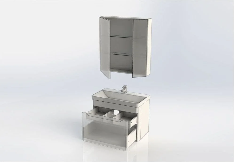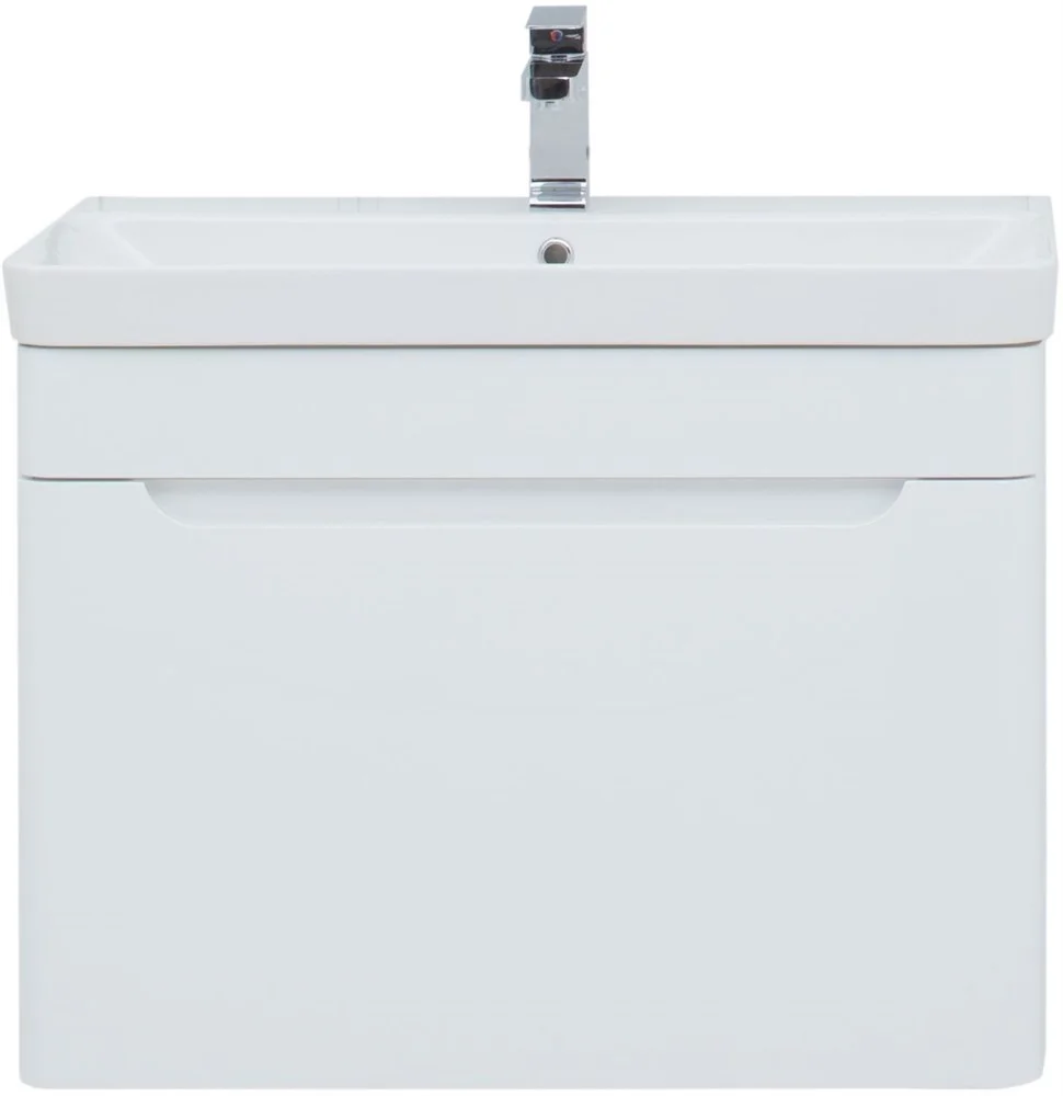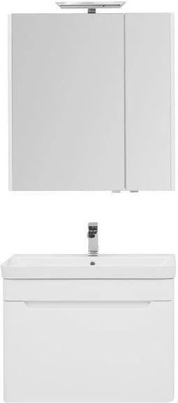 Комплект мебели для ванной Aquanet София 80 белого цвета состоит из изделий, где все детали продуманы до мелочей. Простая форма прямоугольника - в основе подвесных моделей, элегантно закругленные углы - для эстетичности и в целях безопасности, керамическая раковина, составляющая внешне единое целое с тумбой, многокомпонентная зона хранения, которая, несомненно, порадует рачительных хозяев. Для исполнения корпуса изделия использован влагостойкий ЛДСП, выкрашенный белой краской, фасады - из МДФ, внутренние ящики - ВЛДСП в цвете дуб сонома. Глянцевые поверхности выглядят безупречно. Конструкция внутреннего устройства тумбы шириной 80 см представляет собой большой выдвижной ящик, внутри которого предусмотрен еще один, небольшой, с тремя отделениями для размещения различных мелочей. Интегрированная ручка удобна в использовании, при этом выглядит элегантно и лаконично. Комплект тумбе составляет зеркало такой же ширины из коллекции мебели для ванной комнаты производства Aquanet под названием «Орлеан». Материалы, исп