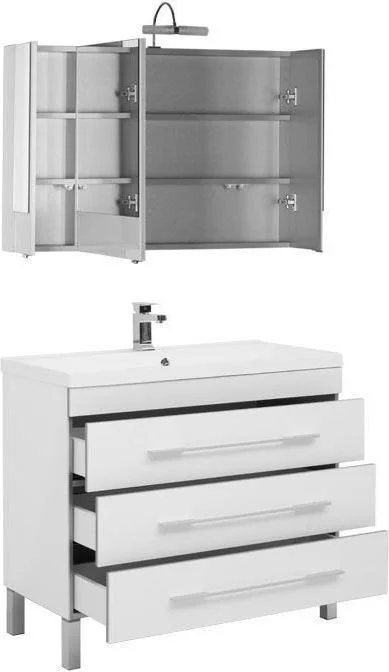Гарнитур для ванной Акванет «Верона» — набор лаконичных мебельных форм с декоративной отделкой из качественного акрила, что повышает уровень влагозащиты. Это одна из самых востребованных мебельных коллекций среди всего ассортимента «Акванет», которая выпускается как в подвесном, так и в напольном вариантах. Среди преимуществ можно отметить отличное качество, актуальный современный дизайн и приемлемую стоимость. Гарнитур универсален, его можно совмещать с любыми оттенками в интерьере и разнообразием креативных идей. Аккуратная геометрия прямых линий в элегантном белоснежном силуэте — эти воплощения мебели «Верона» от «Акванет» сделали ее востребованной ценителями сдержанного авангарда. Экстравагантности дизайну комплекта придают горизонтальные линии фурнитуры ручек выдвижных ящиков. Зеркало «Верона» скрывает в себе еще несколько отделений, где так удобно хранить гигиенические средства, которые теперь всегда будут под рукой, не заполняя все пространство столешницы.