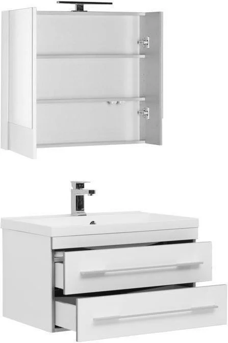 Гарнитур для ванной Акванет «Верона» — набор лаконичных мебельных форм с декоративной отделкой из качественного акрила, что повышает уровень влагозащиты. Это навесной вариант одной из самых востребованных мебельных коллекций среди всего ассортимента Aquanet, которая выпускается, также, и в напольной версии. Среди преимуществ можно отметить отличное качество, актуальный современный дизайн и приемлемую стоимость. Гарнитур универсален, его можно совмещать с любыми оттенками в интерьере и разнообразием креативных идей.