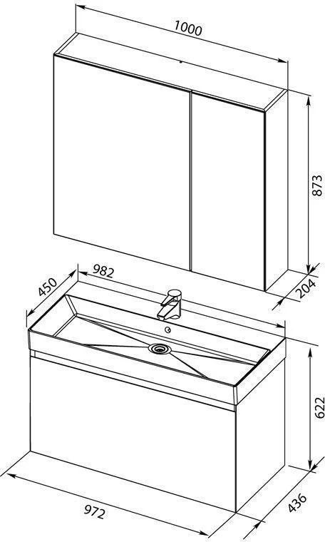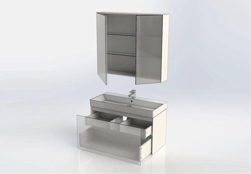 Комплект мебели для ванной Aquanet Йорк 100 кажется довольно-таки простым внешне, но за видимой простотой кроется тщательная работа над каждой линией, над каждой деталью. Обратите внимание на интегрированную ручку, которой по сути не видно, но при открывании выдвижного ящика тумбы она поражает удобством использования. Радует глаз зеркальная чистота глянцевых поверхностей фасадов из МДФ. Мебель белоснежная. Цветовой акцент появляется при выдвижении ящика тумбы, так как внутренние детали сделаны в цвете «дуб сонома». Сочетание выглядит благородно и эстетично, при этом не изменяя общей идее лаконичности во всем. Ящик в тумбочке шириной 100 см один, но внутри него прячется еще одна зона хранения, в которой можно разложить по местам разнообразные мелочи. В системе выдвижения использована фурнитура немецкого производителя Hettich. Дополнительные зоны хранения предусмотрены в зеркале, которое выполнено в виде подвесного шкафчика типа камерино в ширину тумбы, то есть 100 см. За каждой из двух зеркальных дверок спрята