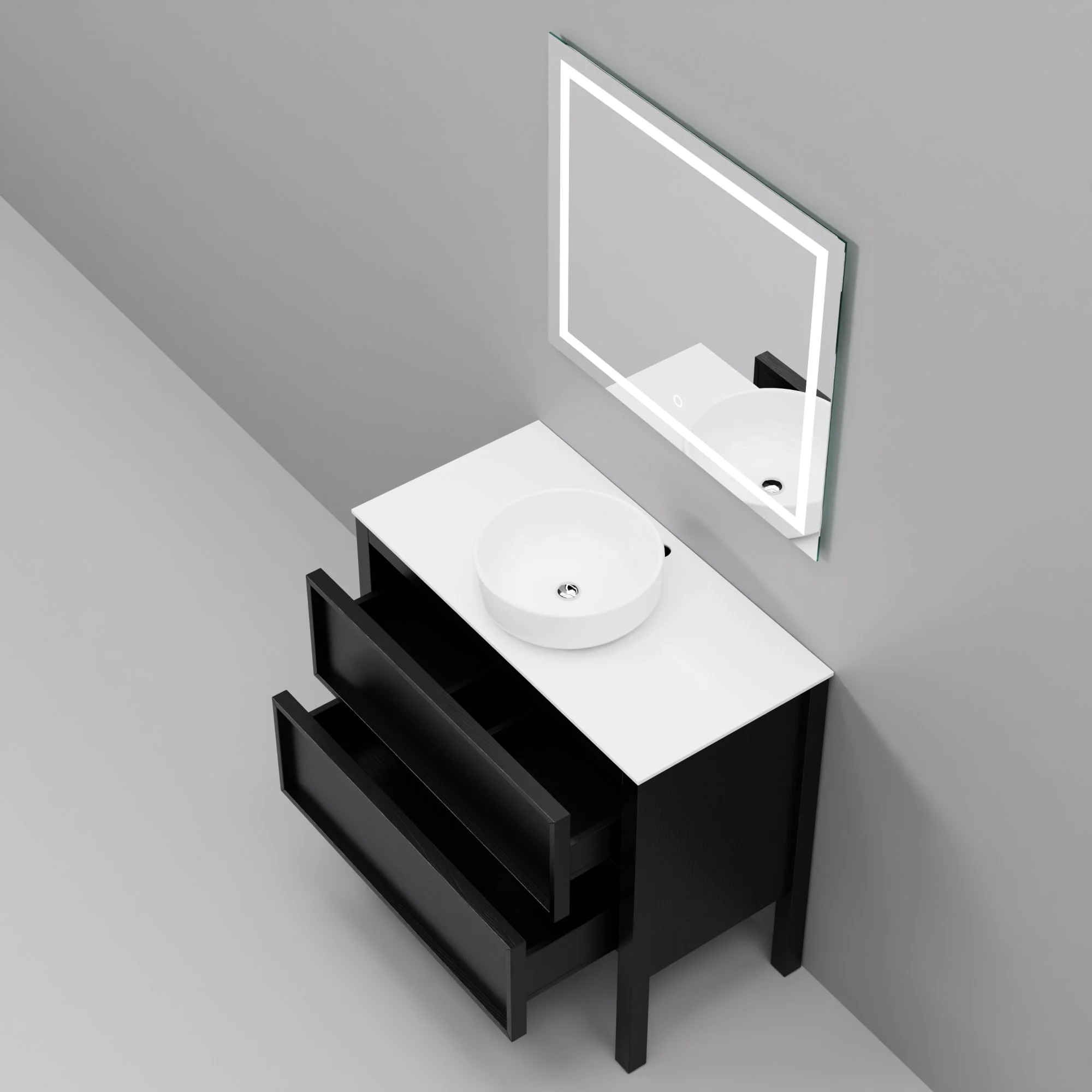 тумба, раковина, зеркало