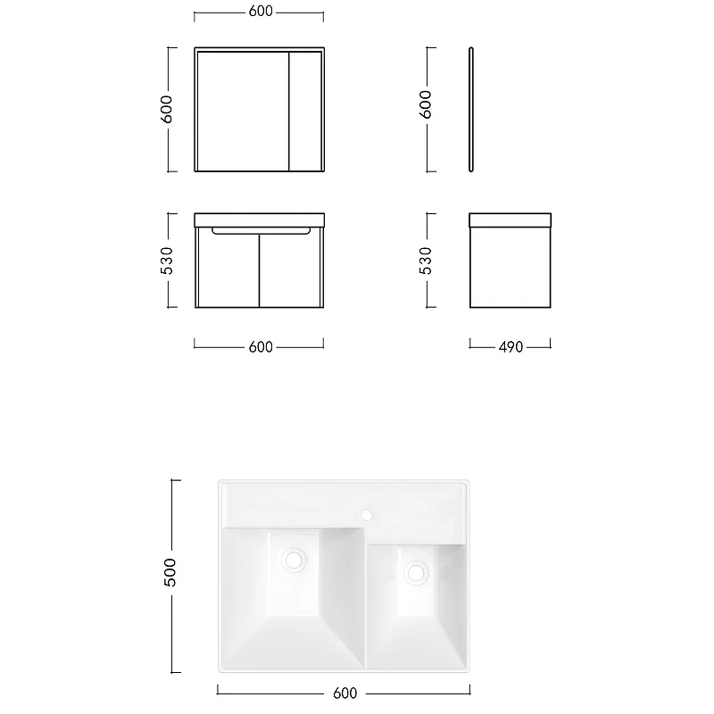Комплект мебели Ceruttispa MAIELLA 60 тумба 605х460х510 с зеркальным шкафом и двойной раковиной