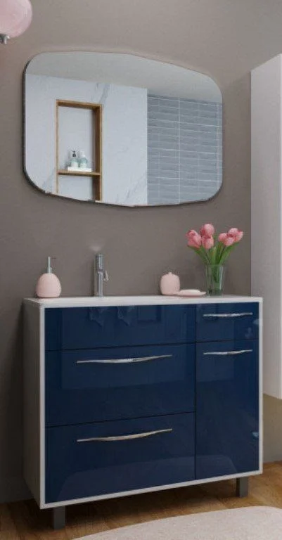 Элегантный и лаконичный комплект мебели Эстет Barcelona 90 напольный L 3 ящика 1 дверь идеально дополнит интерьер ванного помещения в современном дизайне. Изготовленный с применением глянцевой эмали из качественных влагостойких материалов, набор состоит из зеркала с оригинальными скругленными углами и тумбы с раковиной левостороннего расположения. Отделения хранения тумбы представлены тремя выдвижными ящиками и одной боковой секцией с дверкой. Для более комфортного использования предусмотрена система плавного закрывания.Внимание, мебель может быть изготовлена по индивидуальному заказу в любом цветовом решении по каталогу RAL. Заказ мебели в цветном исполнении производится по 100 % предоплате и возврату не подлежит, кроме гарантийных случаев! Для уточнения сроков и стоимости индивидуальных изделий, просим Вас связаться с менеджером.