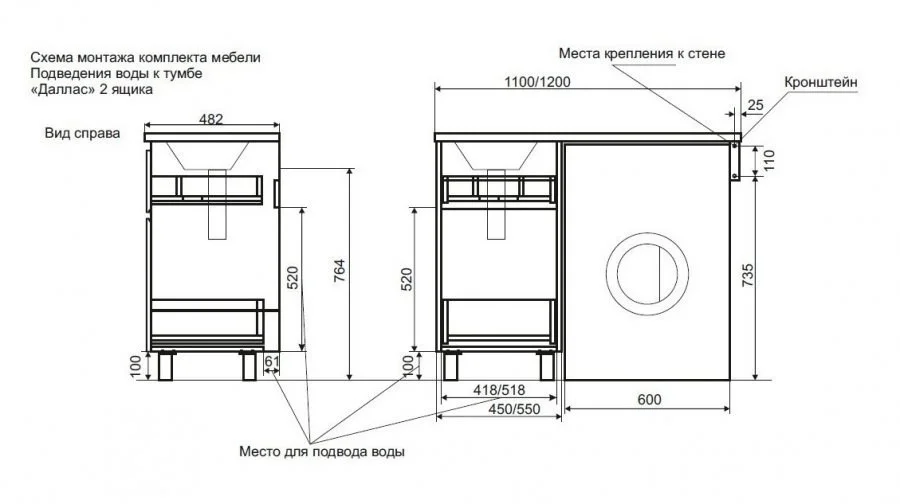 - Раковина Эстет Даллас 110 R (ш/в/г): 110.2x145x482 мм