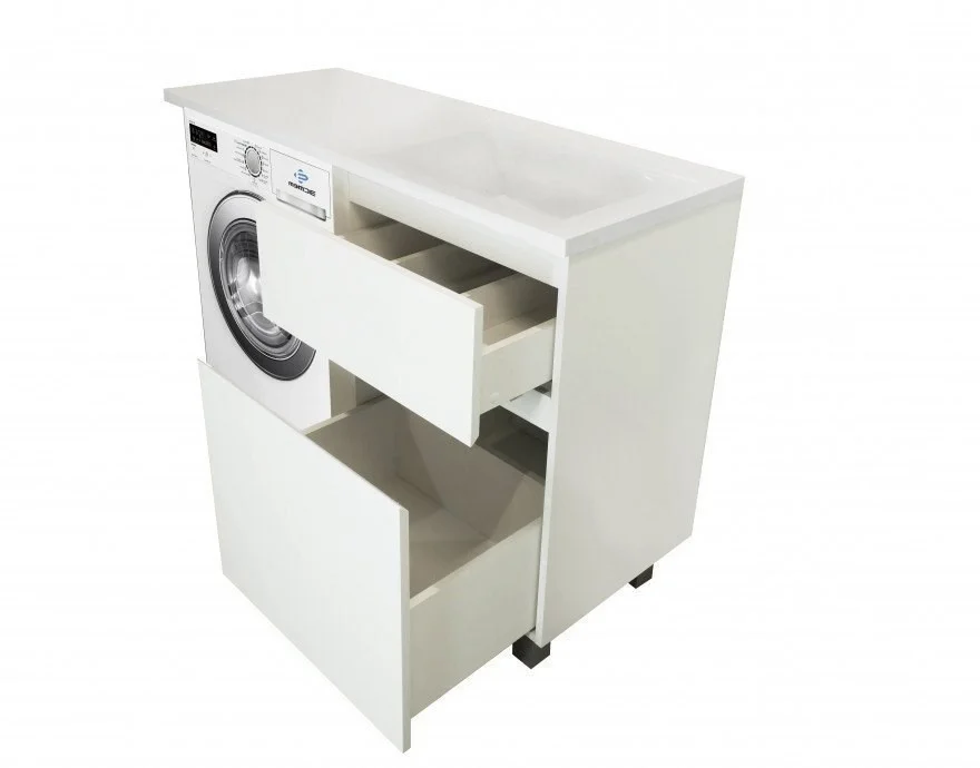 Комплект мебели Эстет Dallas Luxe 115 R для встраивания под стиральную машину – это новый и очень популярный тренд в области сантехники. Спроектированный с учетом всех необходимых требований и желаний пользователей, набор укомплектован стильной и долговечной раковиной-столешницей из искусственного мрамора, напольной тумбой с двумя ящиками и влагостойким зеркалом, которое при желании может дополняться компактным навесным одностворчатым шкафчиком.Внимание, мебель может быть изготовлена по индивидуальному заказу в любом цветовом решении по каталогу RAL. Заказ мебели в цветном исполнении производится по 100 % предоплате и возврату не подлежит, кроме гарантийных случаев! Для уточнения сроков и стоимости индивидуальных изделий, просим Вас связаться с менеджером.