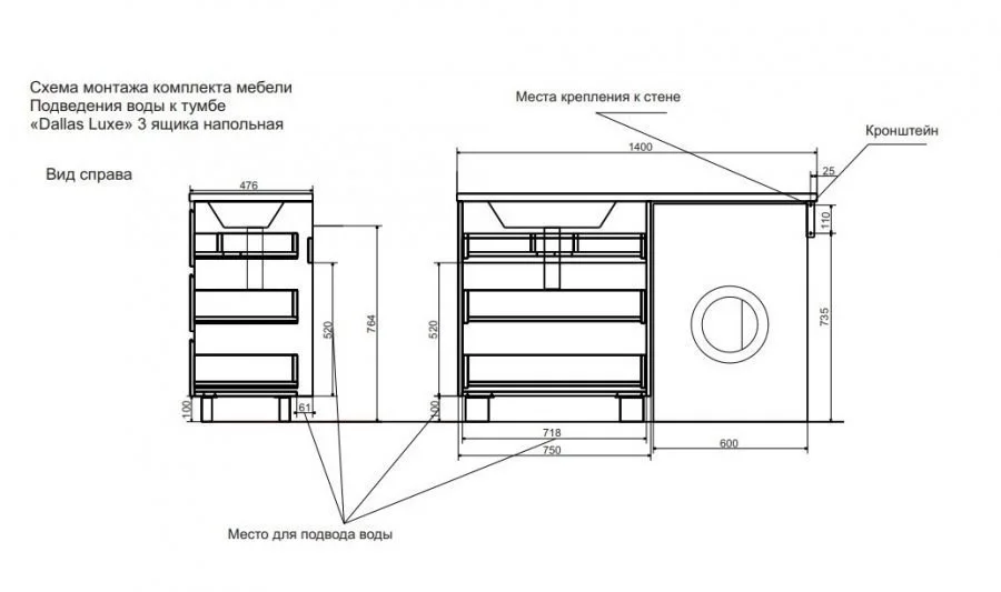 - Раковина Эстет Даллас 140 R (ш/в/г): 1400x145x482 мм