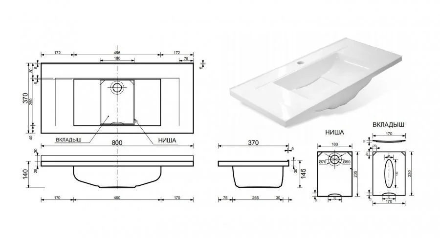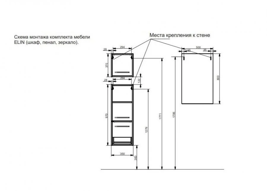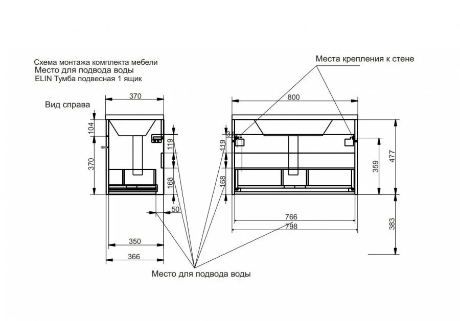 - Тумба подвесная 1 ящик (ш/в/г): 798х36