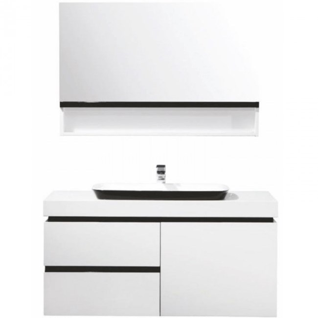 - Раковина оригинальной формы из искусственного камня с белой внутренней и черной внешней поверхностью делает модель интересной и необычной;