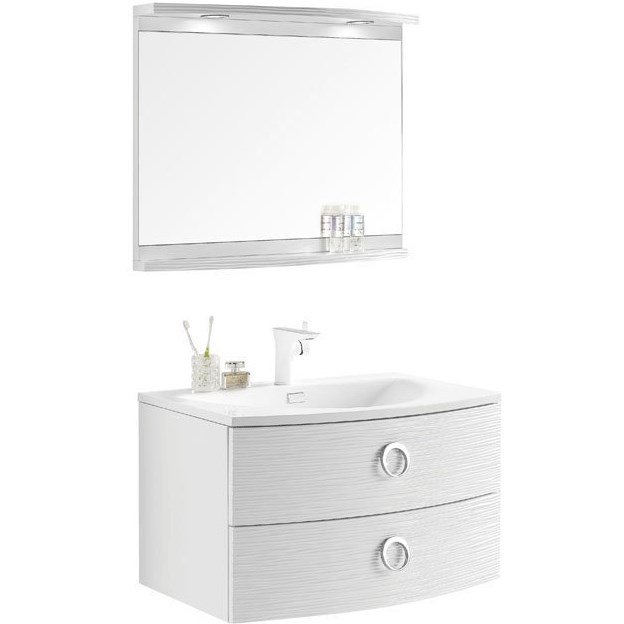 - Зеркало с подсветкой и удобной полкой, выполненное в едином стиле с тумбой, позволяет создать прекрасный комплект мебели, удобный и практичный для пользователя;