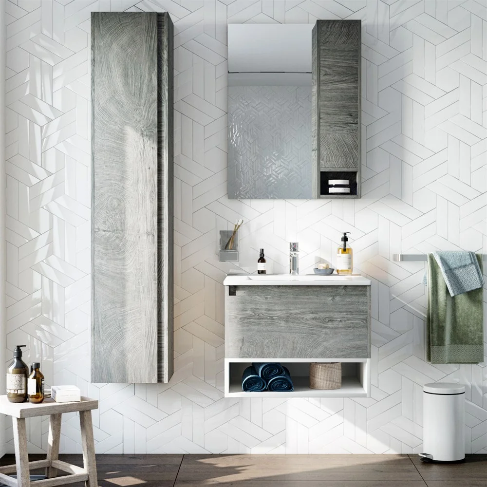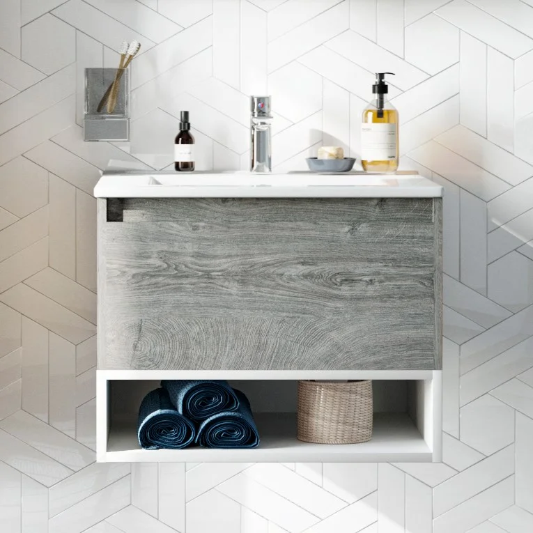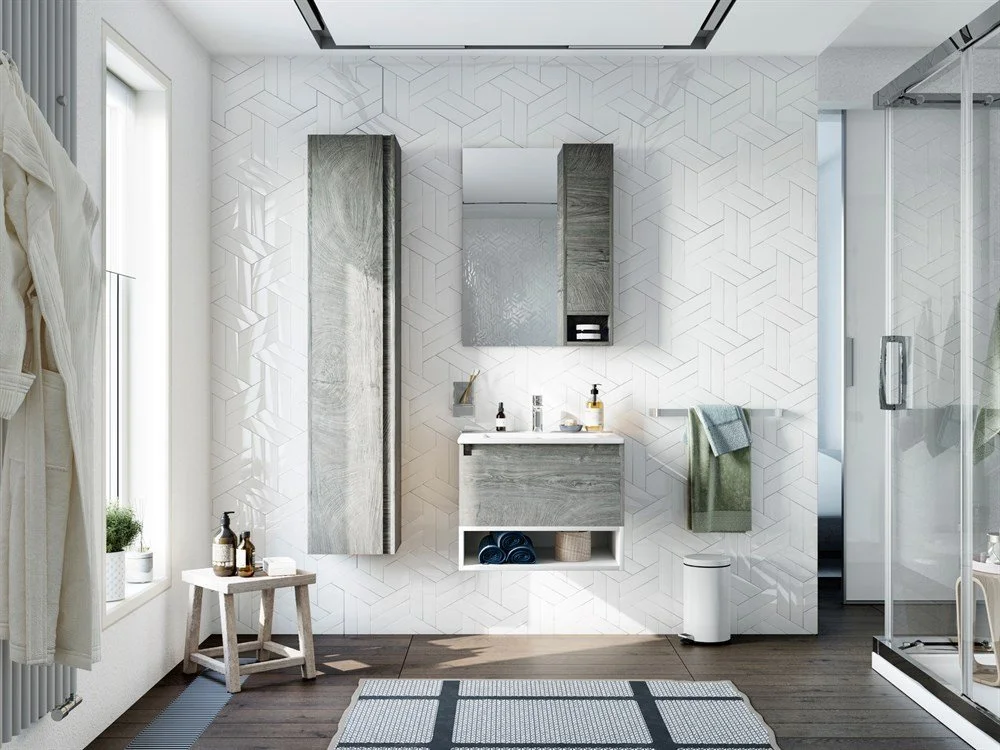 Комплект мебели STWORKI Карлстад 60 дуб рошелье, с белой полкой, в стиле лофт, подвесная (комплект, 440535