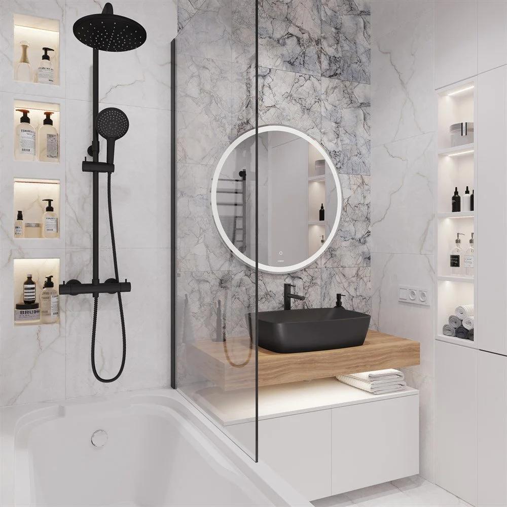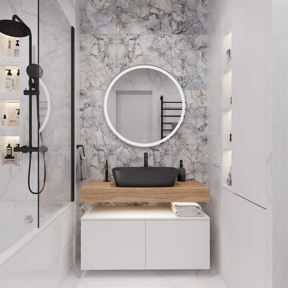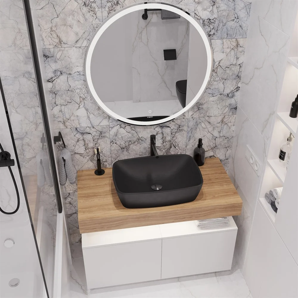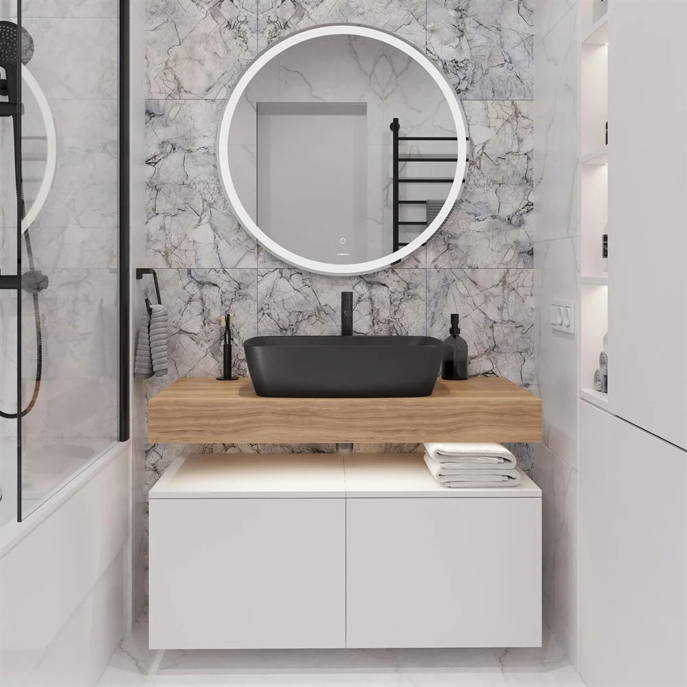 Комплект мебели STWORKI Ольборг 100 столешница дуб французский, без отверстий, 2 тумбы 50, с раковин