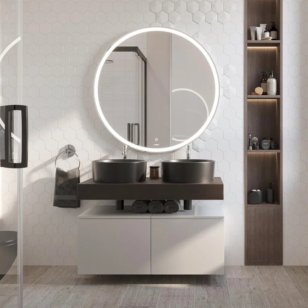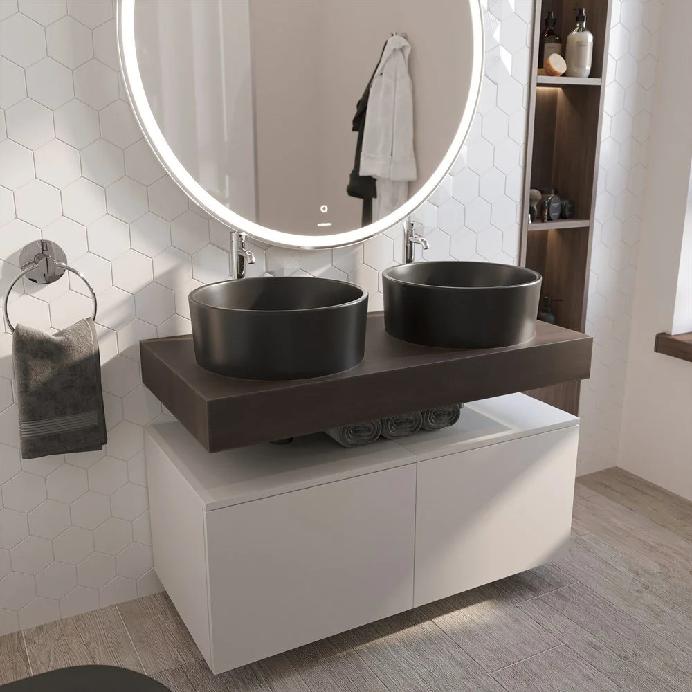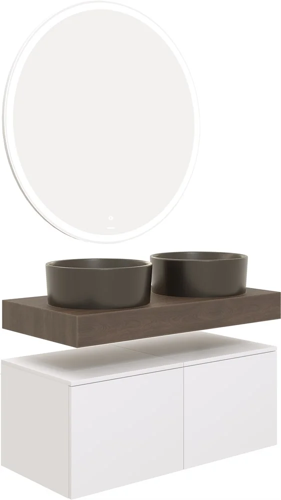 Комплект мебели STWORKI Ольборг 100 столешница дуб карпентер, без отверстий, 2 тумбы 50 + 2 раковины