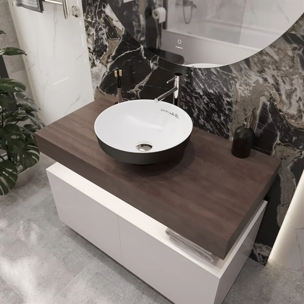 Комплект мебели STWORKI Ольборг 100 столешница дуб карпентер, без отверстий, 2 тумбы 50, с раковиной
