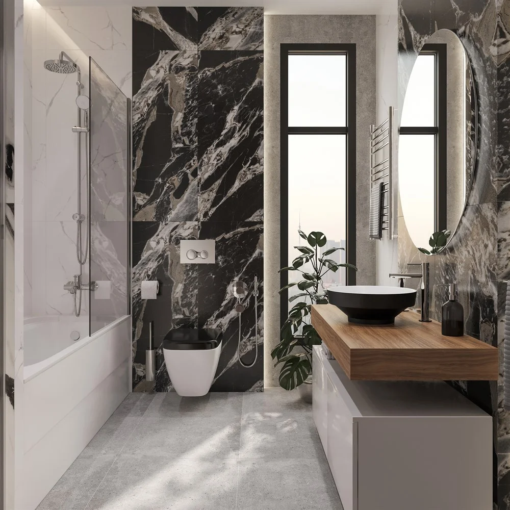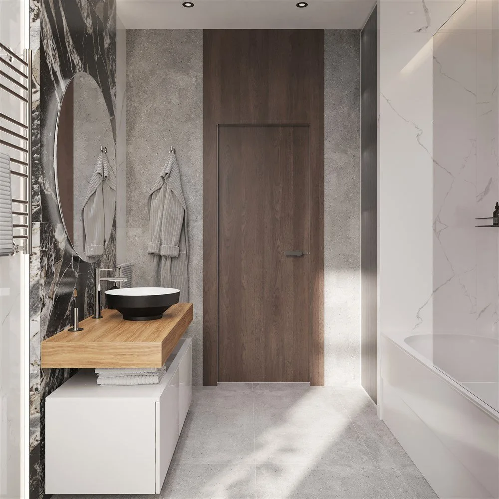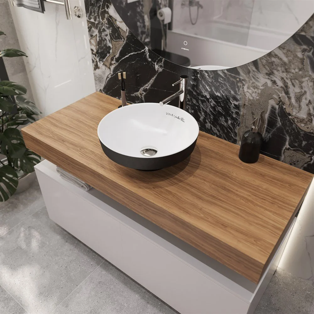 Комплект мебели STWORKI Ольборг 120 столешница дуб французский, без отверстий, 2 тумбы 60, с раковин