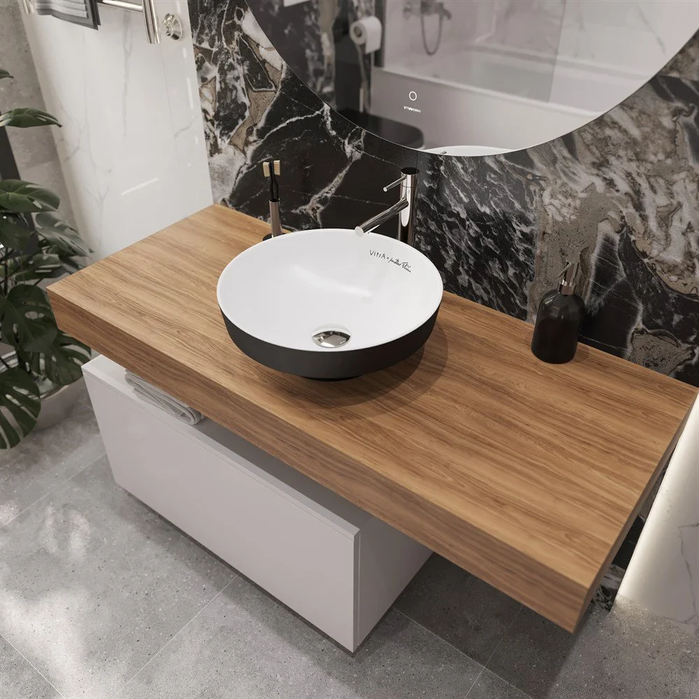 Комплект мебели STWORKI Ольборг 120 столешница дуб французский, без отверстий, c тумбой 80, с ракови