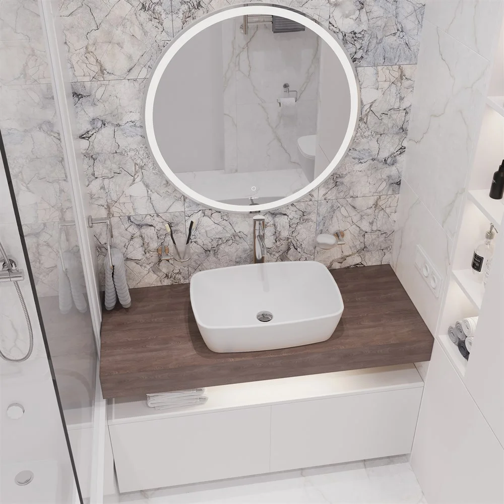 Комплект мебели STWORKI Ольборг 120 столешница дуб карпентер, без отверстий, 2 тумбы 60, с раковиной