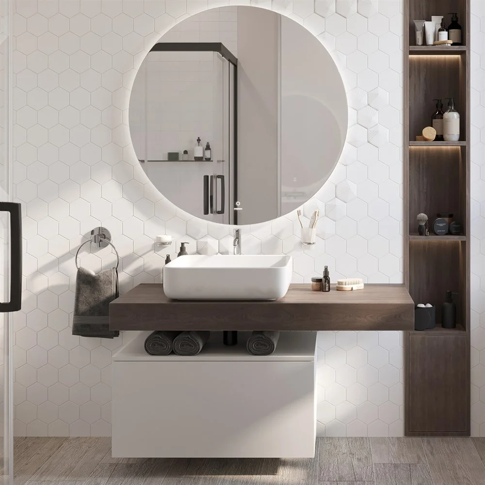 Комплект мебели STWORKI Ольборг 120 столешница дуб карпентер, без отверстий, с тумбой 80, с раковино