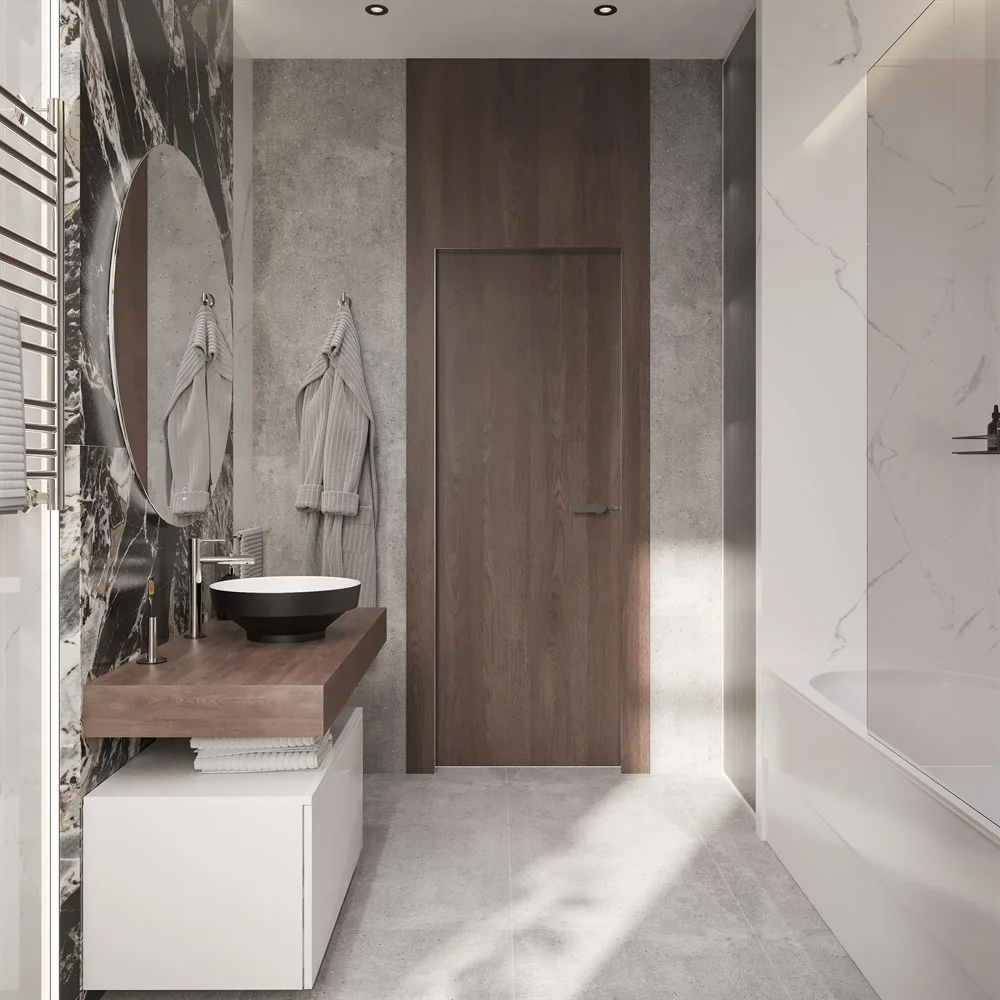 Комплект мебели STWORKI Ольборг 120 столешница дуб карпентер, без отверстий, с тумбой 80, с раковино